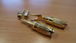 Pozlacené konektory Vincent s možností volby banánku nebo vidličky pro připojení reprosoustav k zesilovači. 1 pár obsahuje 2x tělo banánku s označením červený/černý, 2x banánek, 2 x vidličku. Vnitřní průměr pro zasunutí kabelu 6 mm. Cena za pár 100,- Kč plus doprava 89,- (Zásilkovna). Použité. Celkem mám k dispozici 6 párů.