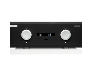 Nabízím zcela nový s plnou zárukou High-Endový anglický integrovaný zesilovač MUSICAL FIDELITY M8x o obrovském autoritativním výkonu 2 x 550W/8Ohmů, 870 W energie do 4 ohmů a okamžitý výkon 1600 W na 2 ohmy, se dvěma monoblokovými koncovými zesilovači sdílejícími společné šasi. Maximální napětí je 67 voltů až 190 voltů a maximální proud je 200 ampérů Každý z obou zesilovačů má svůj vlastní chladič a samostatný TOROIDNÍ transformátor. Skutečně tedy duální mono. Kovové zpracování je vysoce kvalitní. Přední panel je vyroben na zakázku z hliníku MILSPEC. Na zakázku vyrobené chladiče mají vynikající rozptylové vlastnosti a povrchovou úpravu. M8xi tak kombinuje výjimečně živou dynamiku s bohatým zabarvením. Místo obvyklého vnitřního propojení kabely, jsou svorky pěti vstupů pájené přímo k hlavní desce předzesilovače. Tato velmi krátká signálová cesta zajišťuje extrémně nízkou impedanci. Každý kanál používá 12 bipolárních tranzistorů, proto je snadné dosáhnout špičkového proudového výkonu až 200A.