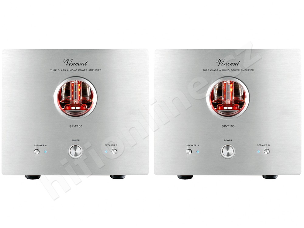 Vincent SP T100. Třída High End zesilovačů - hybridní diskrétní koncepce s podporou třídy "A". Skloubením silných koncových tranzistorů a budících elektronek bylo dosaženo velmi příjemného a plného zvukového projevu. Pokud je pro vás důležitá příjemnost projevu ve vysokém výkonu a chcete u poslechu zároveň relaxovat, neměly by vám tyto hybridní monobloky uniknout ...